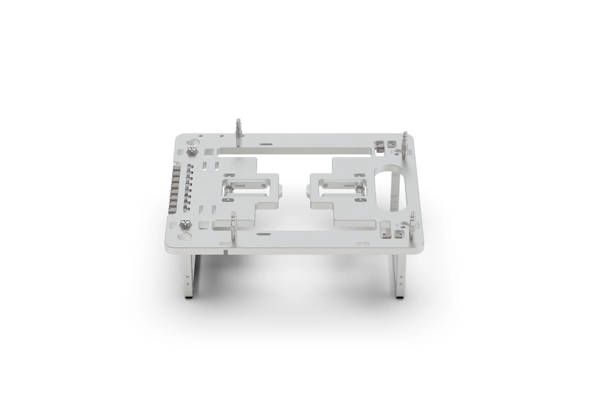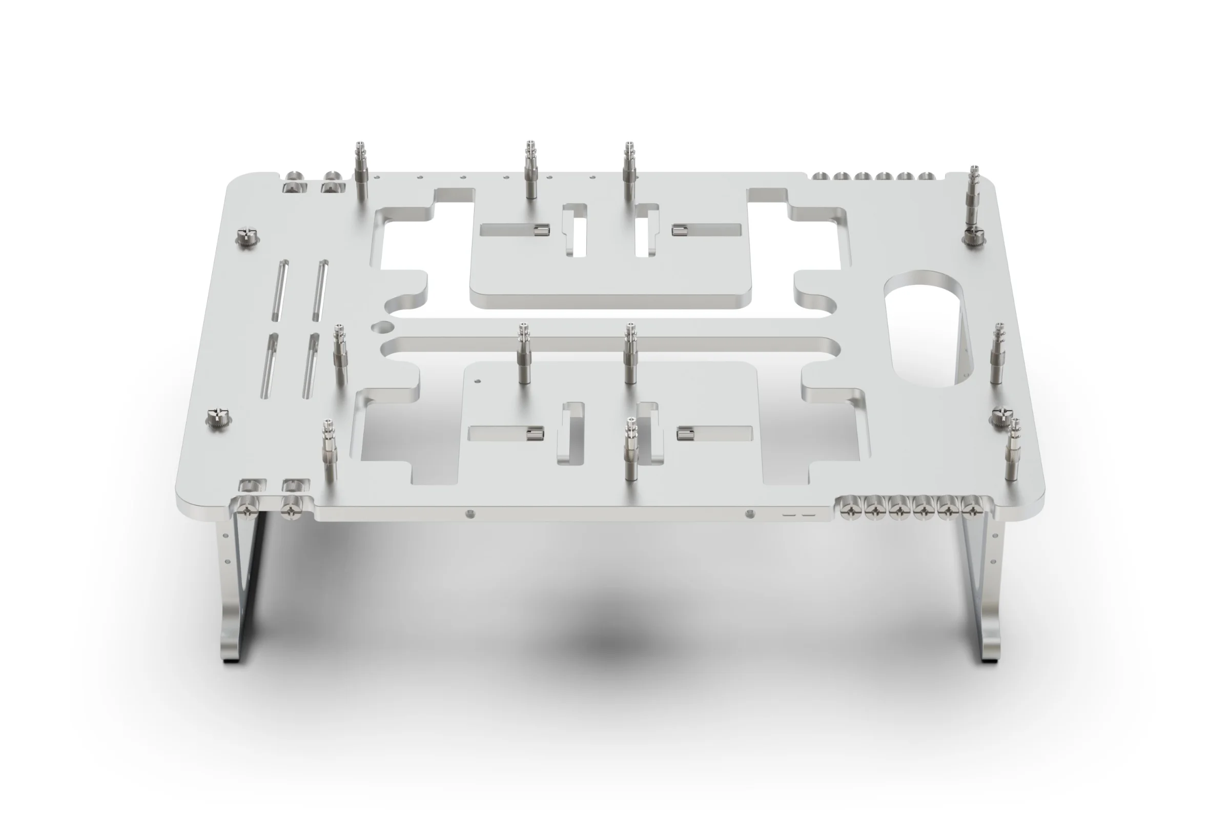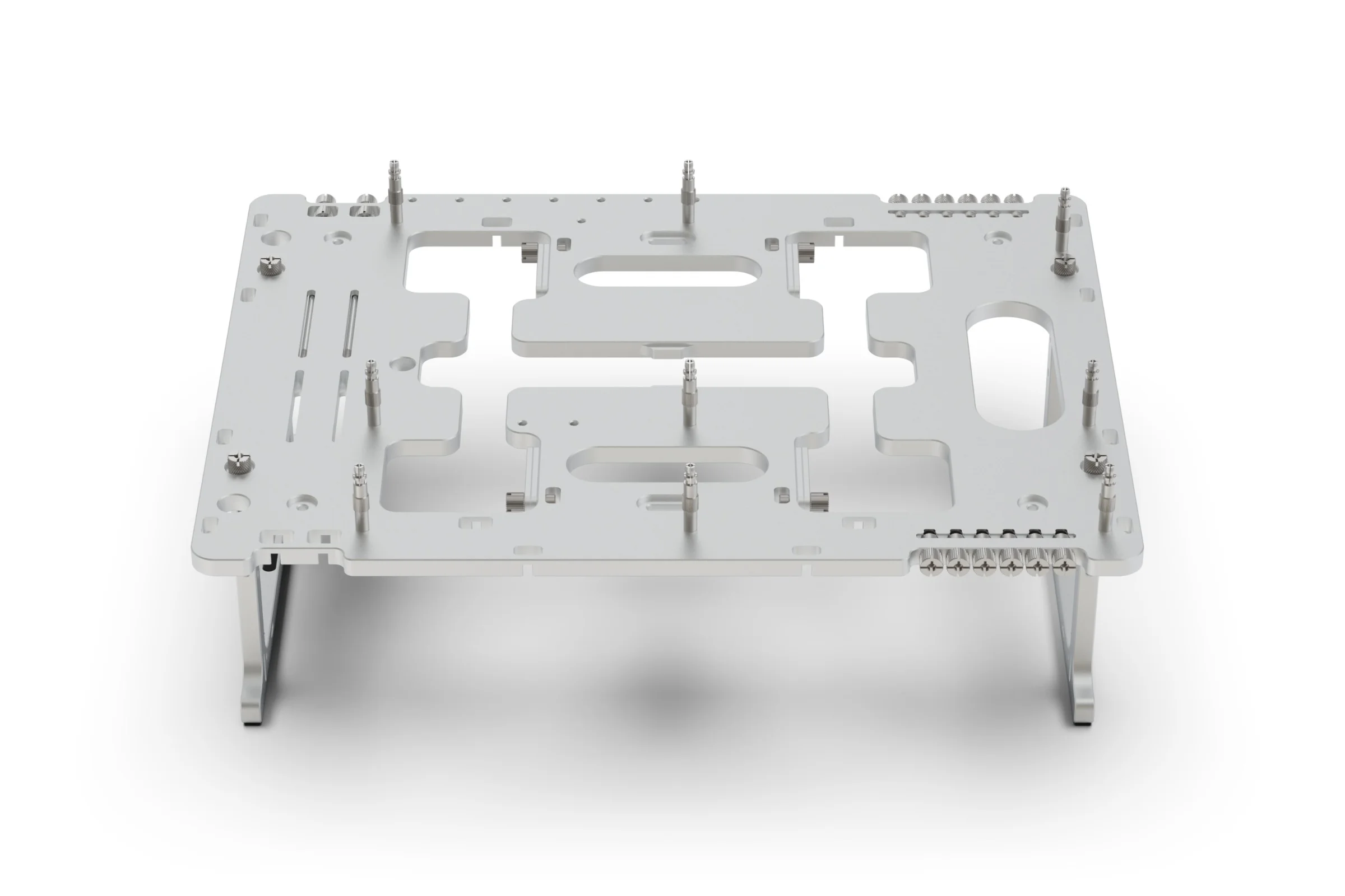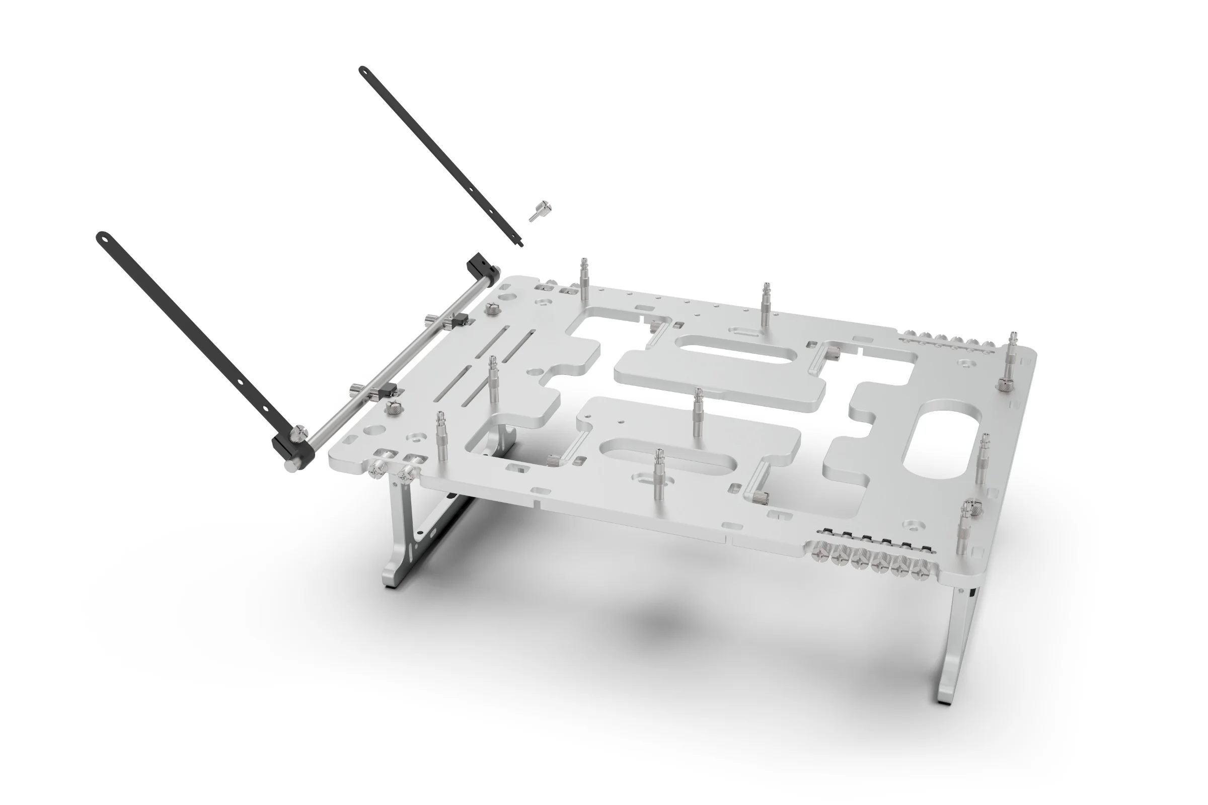 The SMR (Side Mounted Rail) Kit replaces the standard compact brackets with a significantly more robust rail system. Compatible with the original BC1 (V1), the V2, and the BC1 Mini, the SMR features adjustable, rotating clamps that allow for the precise placement of radiators, fans, and other complementary hardware. Two different bracket designs are included, a longer bracket for radiators and shorter bracket for fans, VU1 and other hardware.
