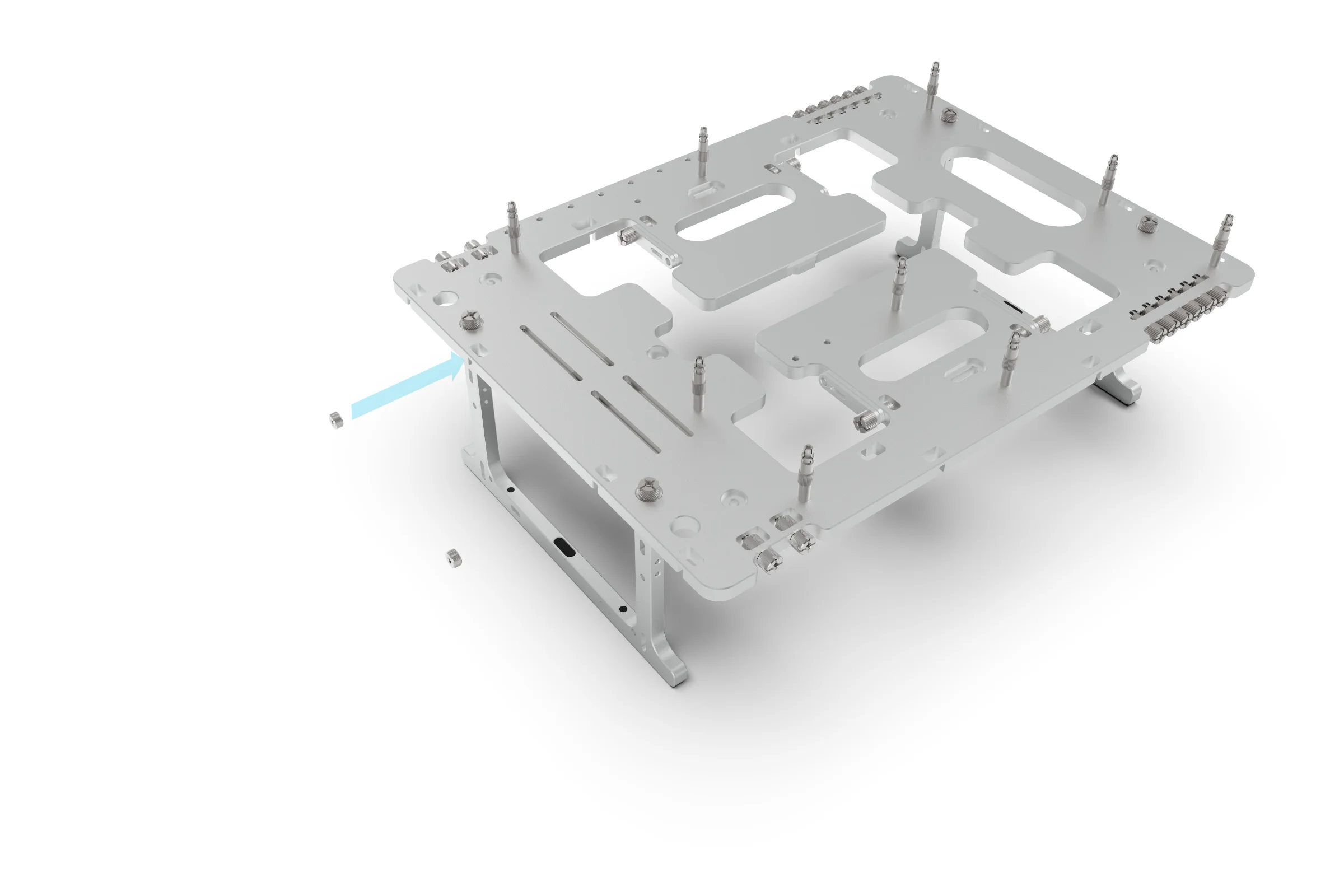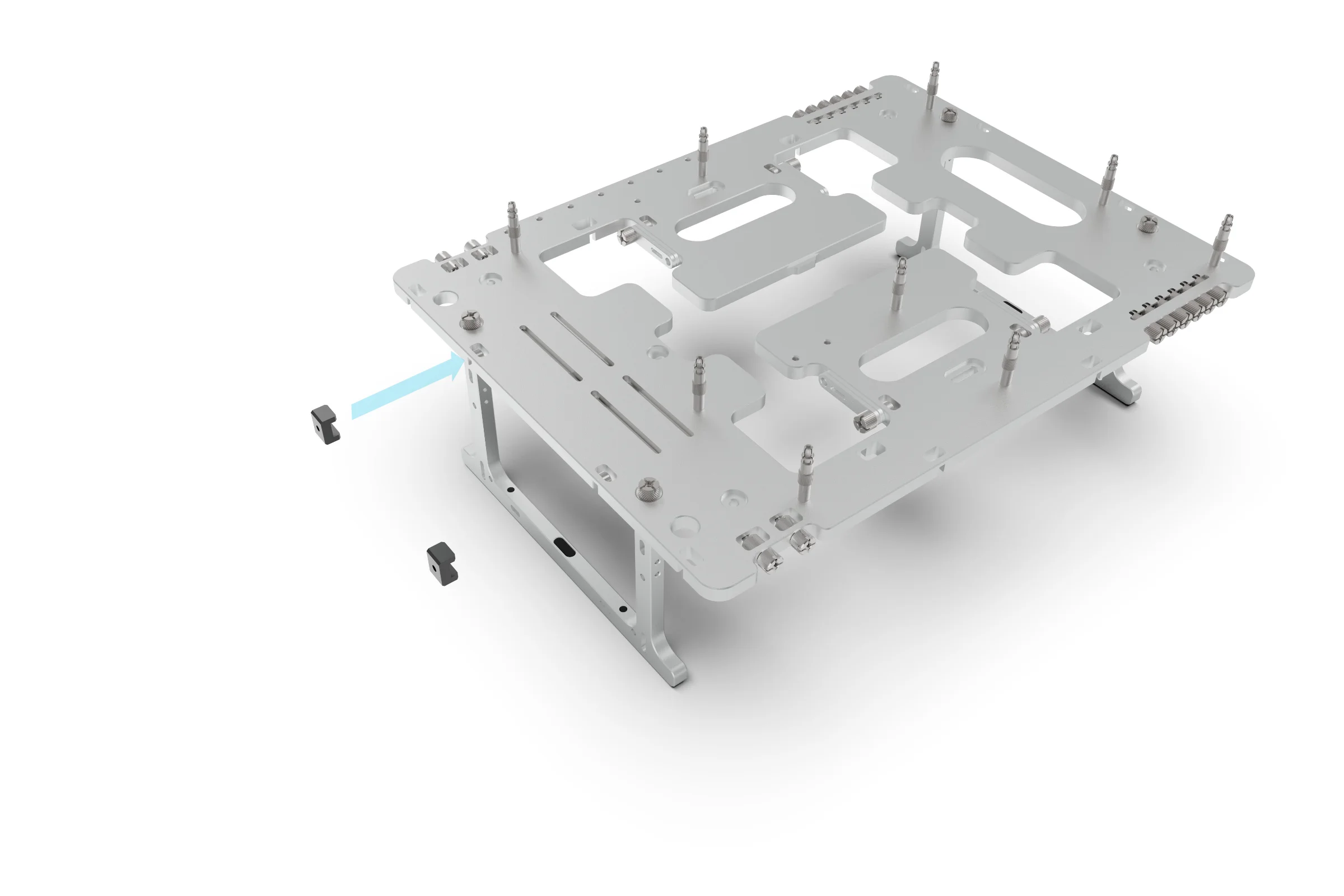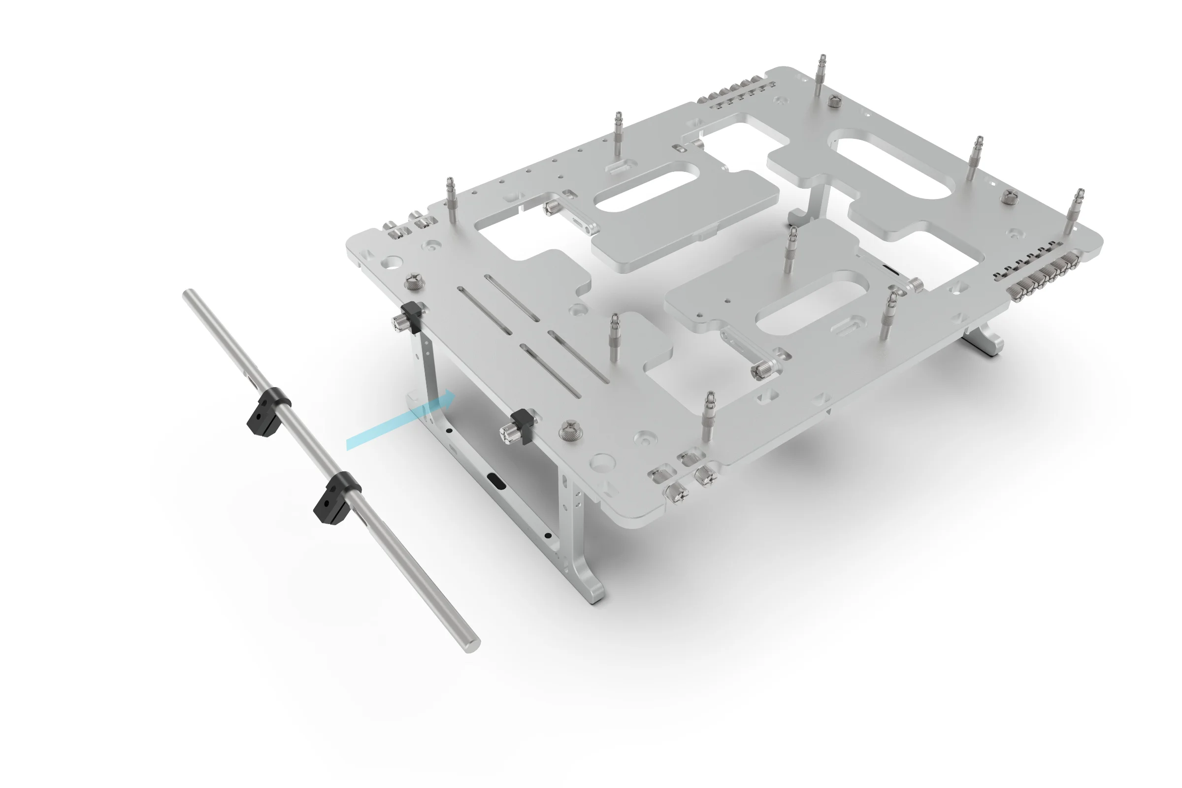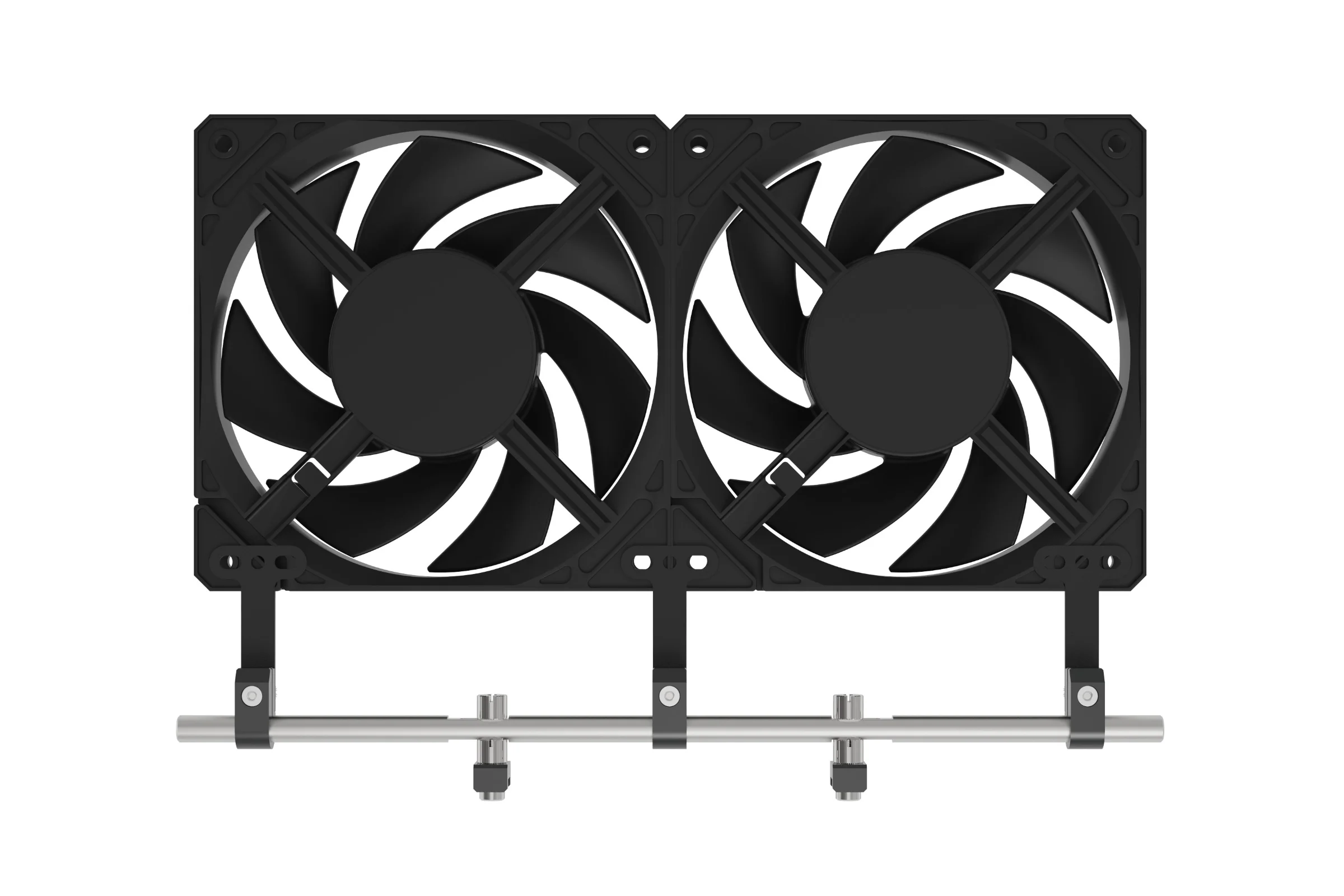 With the rail and clamps fitted, the final step is to attach your hardware using the appropriate brackets. For the procedure below we will use a 240mm radiator but the exact same principle applies for other accessories.