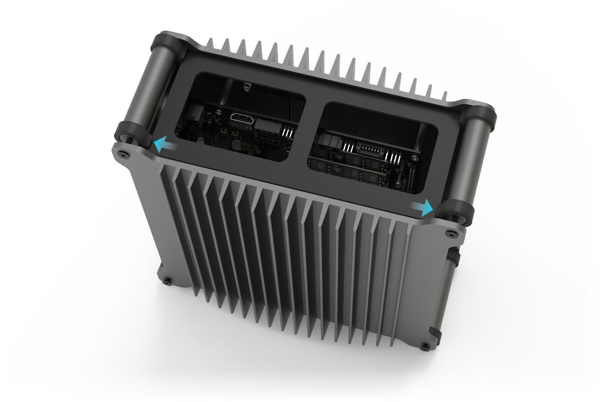 Start by inserting the inner panel into the slot of the right side heat sink (fixed side) ensuring that you also clear the bumpers.
